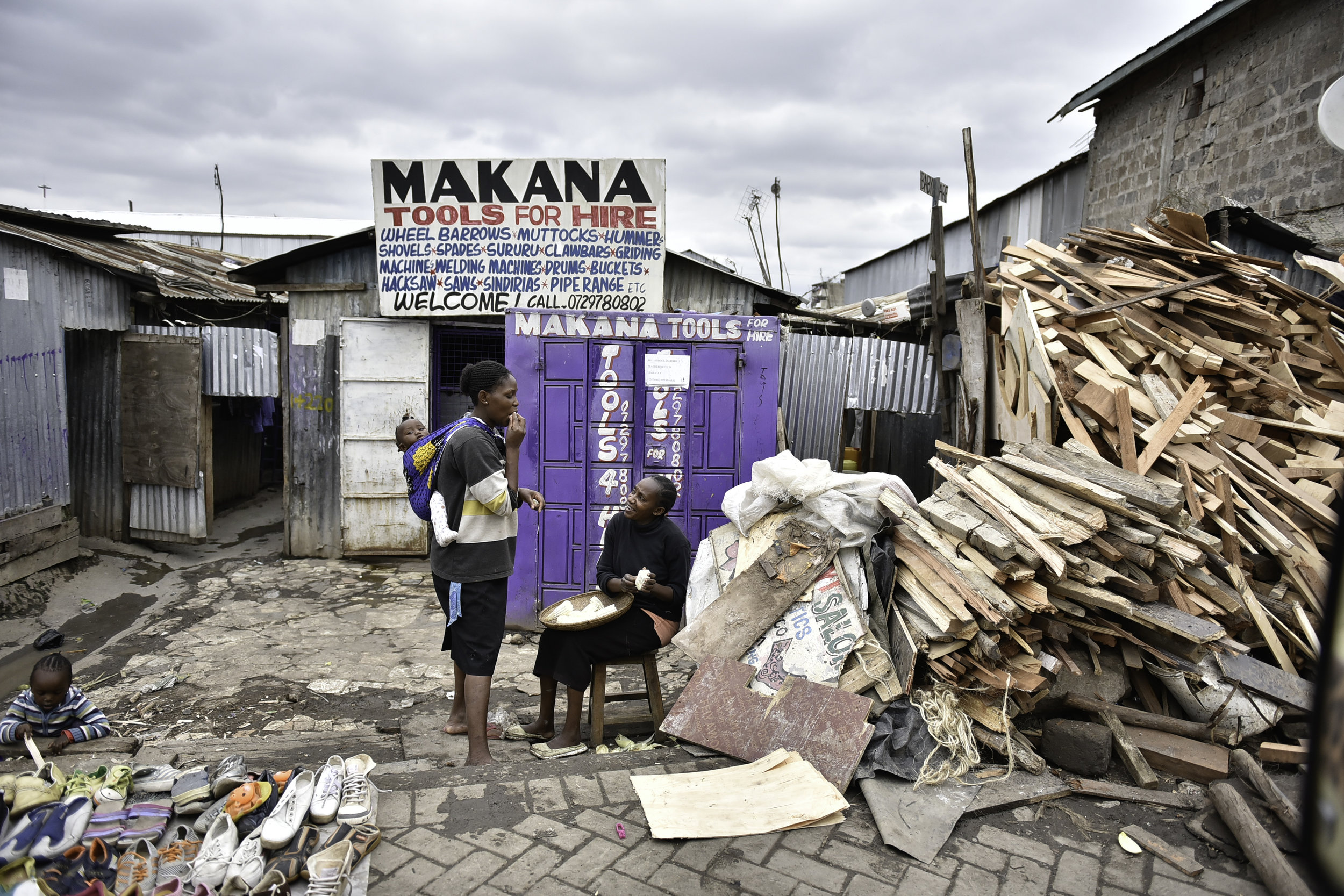 AmericaShare works in Mukuru kwa Njenga, one of eight villages that make up the second-largest informal settlement in Nairobi, Kenya. The poverty experienced by Mukuru’s residents is extreme, with many families sharing a single toilet and many children sharing a single bed. The streets are lined with colorful storefronts and homes made from tin sheets. Mukuru lacks basic formal infrastructure, such as running water, electricity and sanitation.